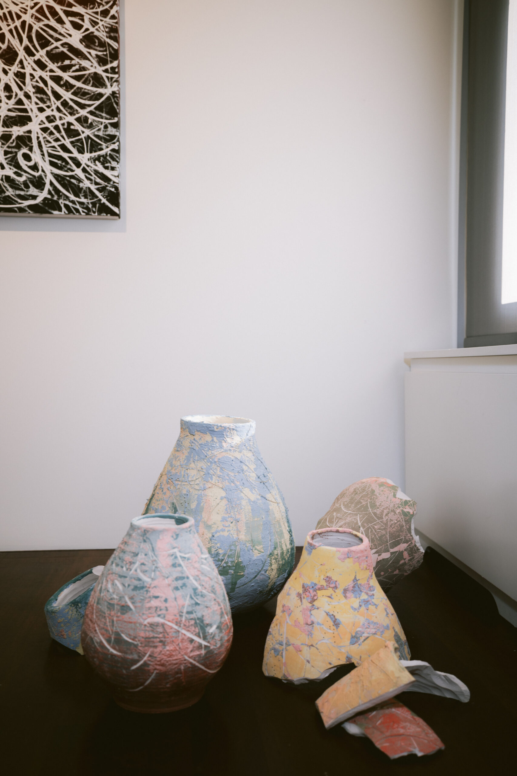 - What is Really Happening? (2025) by José Parlá – Acrylic on canvas and ceramic installation