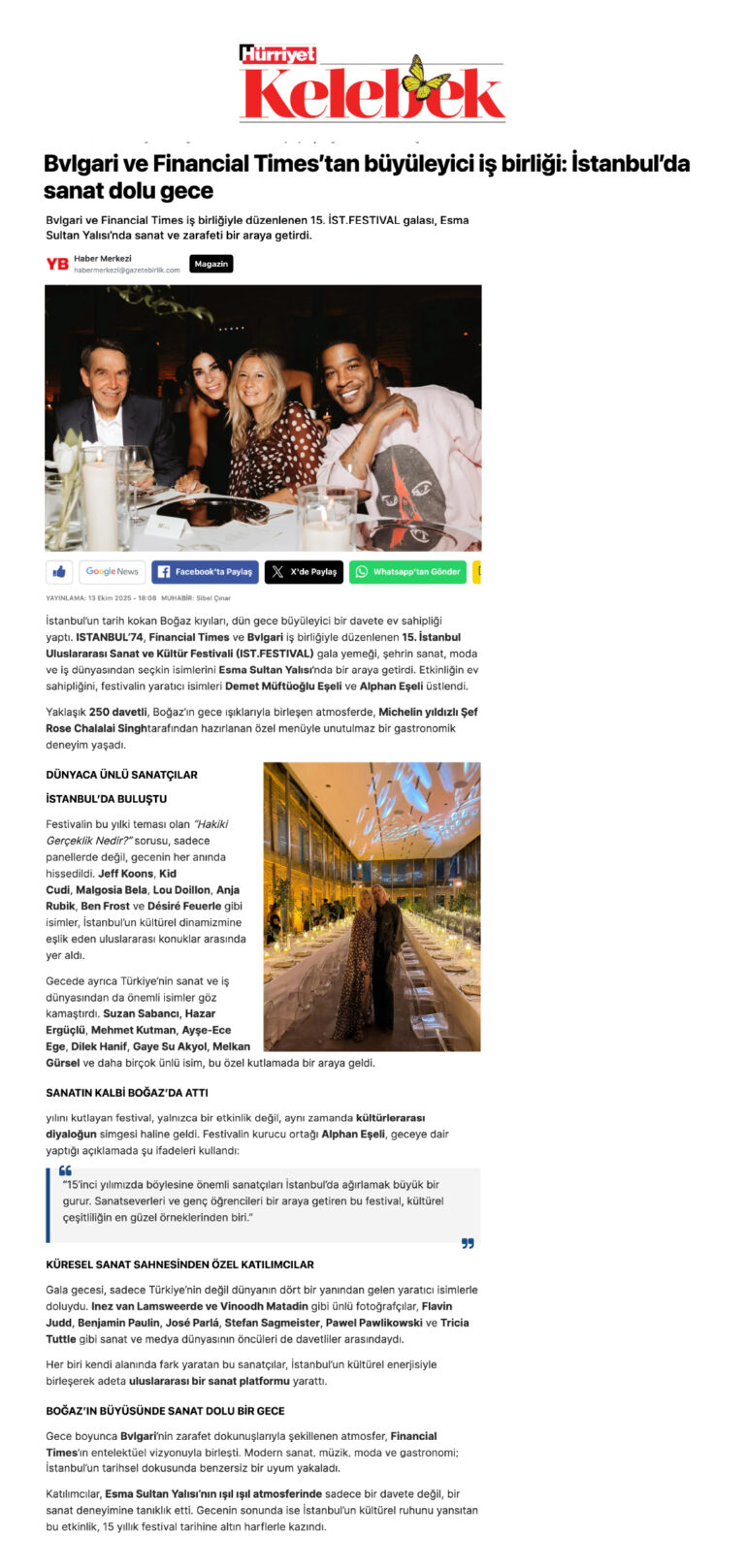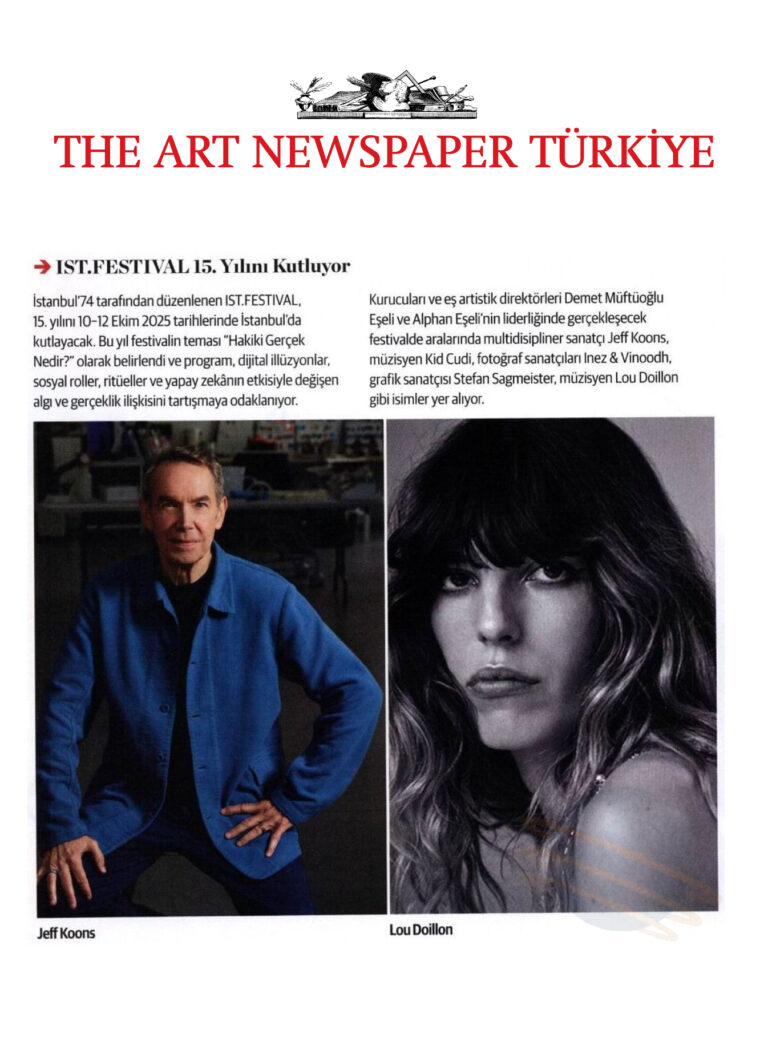 ISTANBUL’74 is an independent multidisciplinary platform founded by Demet Müftüoğlu-Eşeli and filmmaker Alphan Eşeli in 2009. Thriving on creative exchange, ISTANBUL’74 curates and organizes various activities, including The Istanbul InternationalArts & Culture Festival (IST. FESTIVAL), exhibitions, public installations, cultural events, andartistic collaborations across the world. Committed to challenging the status quo, and pushing boundaries, ISTANBUL’74 forges new creative and cultural connections through its divisions, leveraging an unparalleled network of industry leaders, influential artists, and tastemakers.